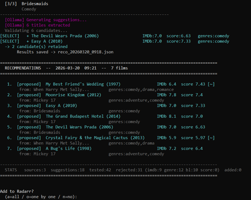 arrow-up10arrow-down1imageI built a local AI movie recommender for Radarr using Ollamaplus-squarelemmy.worldnikodindon@lemmy.world to Selfhosted@lemmy.worldEnglish · 19 hours agomessage-square4linkfedilink