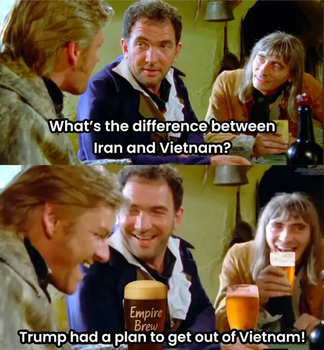 merdaverse@lemmy.world to Political Memes@lemmy.world · 19 hours agoThe difference between Iran and Vietnamlemmy.worldimagemessage-square2linkfedilinkarrow-up1142arrow-down10
