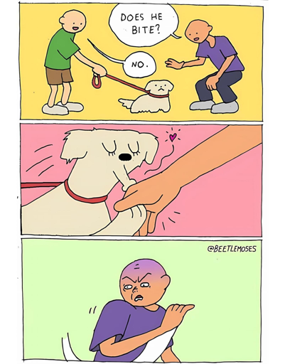 minus-squareorder216@lemmy.worldlinkfedilinkarrow-up0·7 days agoHand-kissing dog would be more scary than a biter one /s